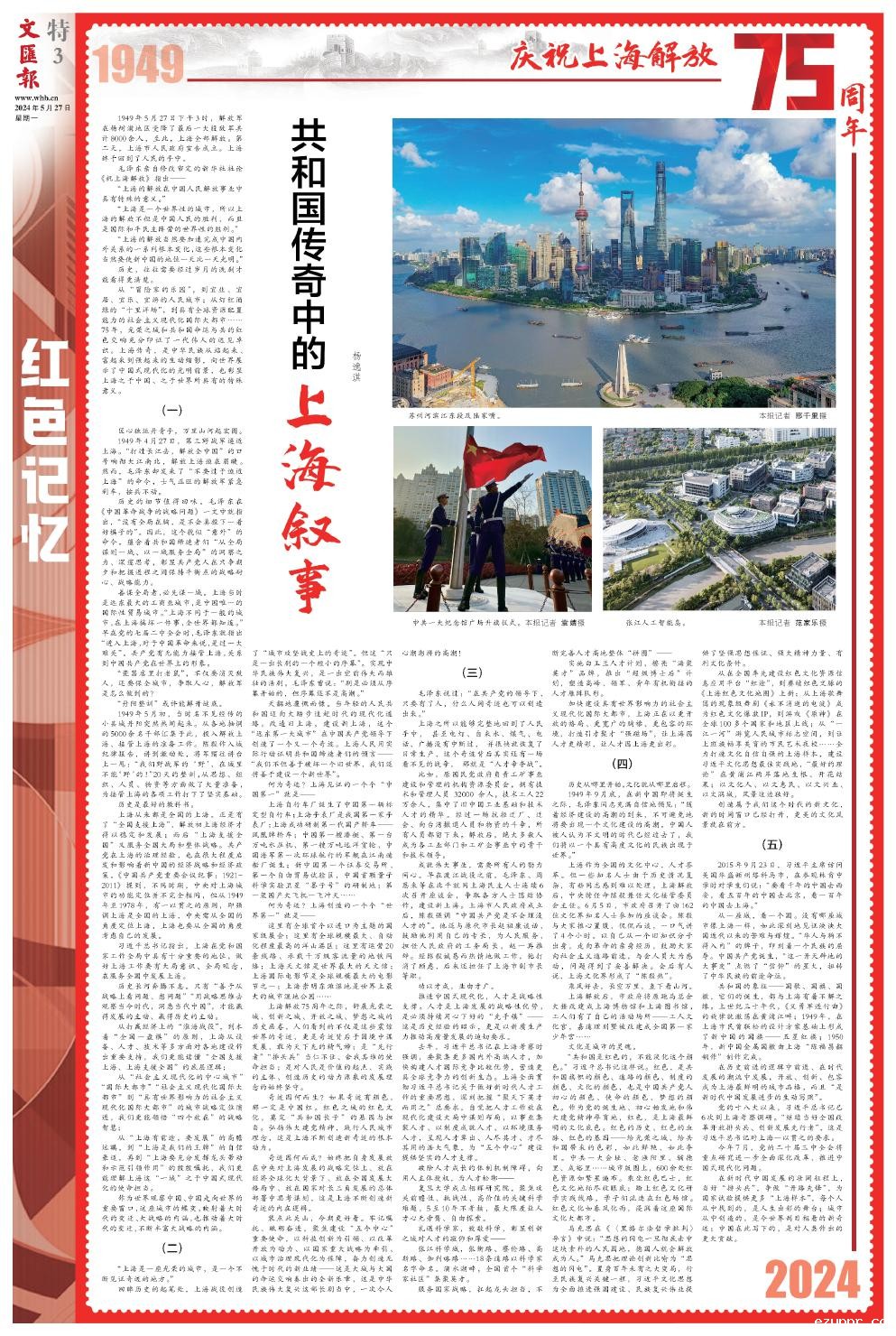 从“冒险家的乐园”,到宜业、宜居、宜乐、宜游的人民城市;从灯红酒绿的“十里洋场”,到具有全球资源配置能力的社会主义现代化国际大都市……75年,光荣之城和共和国命运与共的红色交响充分印证了一代伟人的远见卓识。上海传奇,是中华民族从站起来、富起来到强起来的生动缩影,向世界展示了中国式现代化的光明前景,也彰显上海之于中国、之于世界所具有的特殊意义。