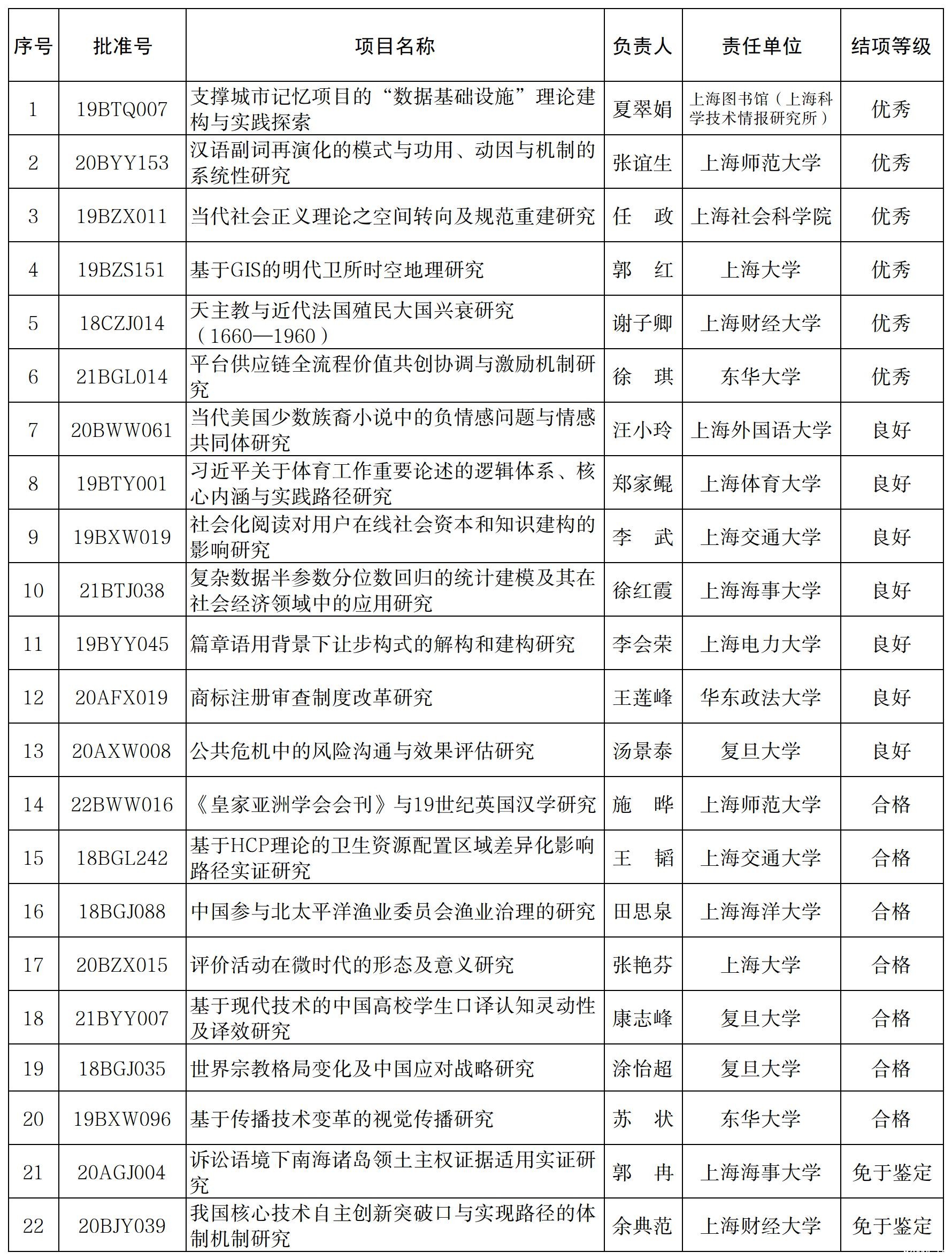 2024年6月,全国社科工作办验收428个年度项目、青年项目和西部项目结项申请。经专家鉴定,我市22个项目通过结项。现将结项情况公布如下: