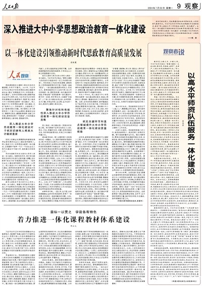 习近平总书记对学校思政课建设作出重要指示,强调要“构建以新时代中国特色社会主义思想为核心内容的课程教材体系”。构建以习近平新时代中国特色社会主义思想为核心内容的课程教材体系,是深入推进大中小学思想政治教育一体化建设的关键所在。我们要在课程目标、教材内容、教学方式方法等方面下功夫,实现思政课建设与党的创新理论武装同步推进的目标。