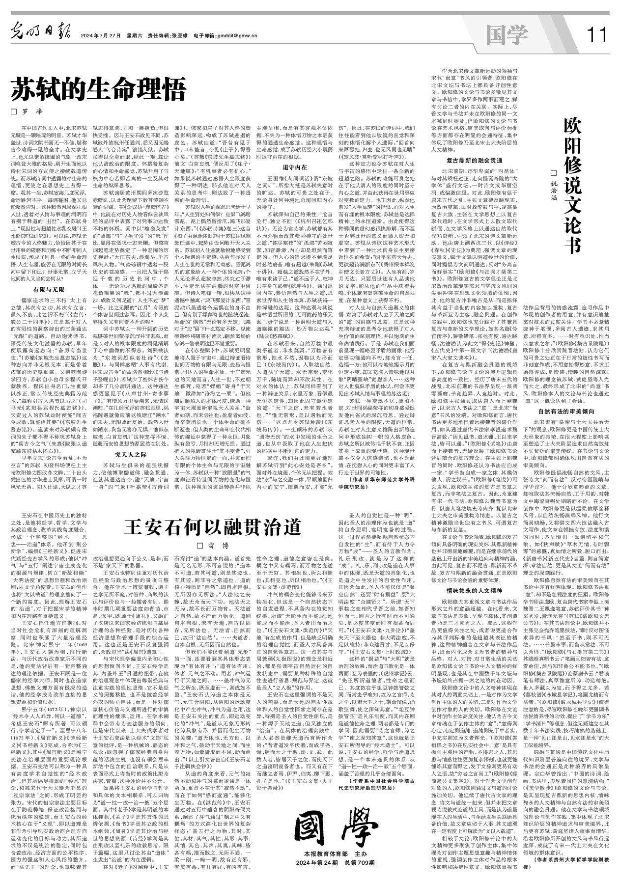 在中国古代文人中,北宋苏轼无疑是一颗璀璨的明星。苏轼才华盖世,诗词文赋书画无一不佳,堪称古今难得一见的全才。在文学史上,他尤以豪放捭阖的气象一改宋词难登大雅的格局,别开生面地以诗化宋词的方式使之接续载道传统。而苏轼诗词中透露的对生命的理悟,更使之在思想史上占得一席。观其一生,苏轼宦海几度沉浮,命运跌宕不平。每遇蹇困,他又总能超然应对。这种超然因深深扎根人世,透着对人情与事理的洞明而有别于释道的“出世”。在苏轼身上,“现世性与超越性水乳交融”(王水照《苏轼研究》)。可以说,苏轼光耀古今的人格魅力,恰恰因其于在世用事的磋磨和历练中不断叩问人生根底,形成了别具一格的生命理悟:人生有涯,能否在无限的时间长河中留下印记?世事无常,立乎天地间的人又当何去何从?