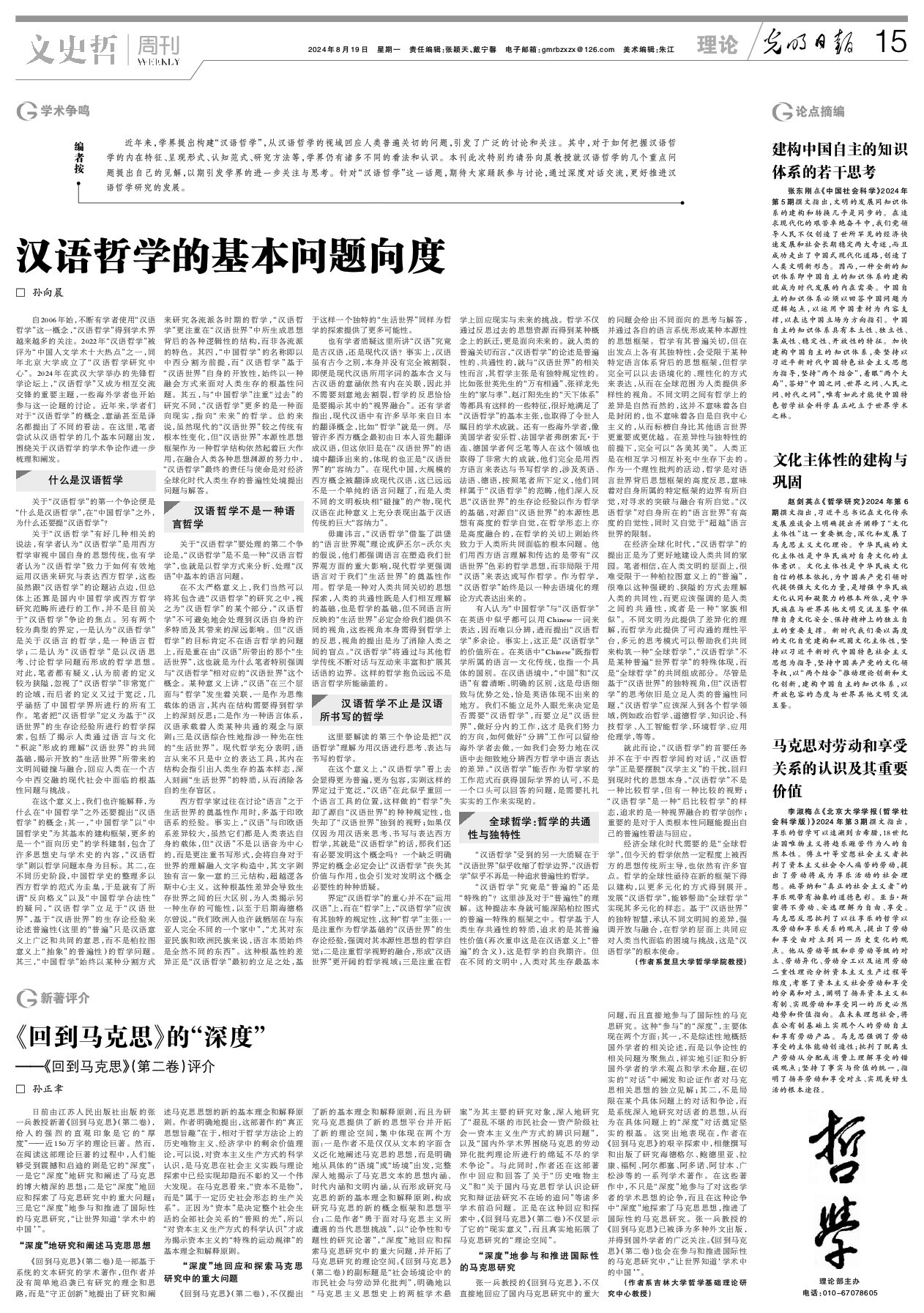 孙向晨:汉语哲学的基本问题向度