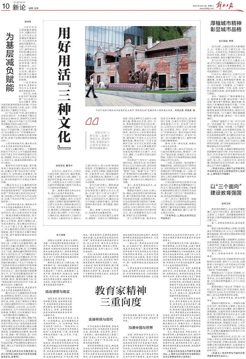 用好用活“三种文化”,连接上海的过去、现在和未来,彰显社会主义现代化国际大都市的神韵魅力。
