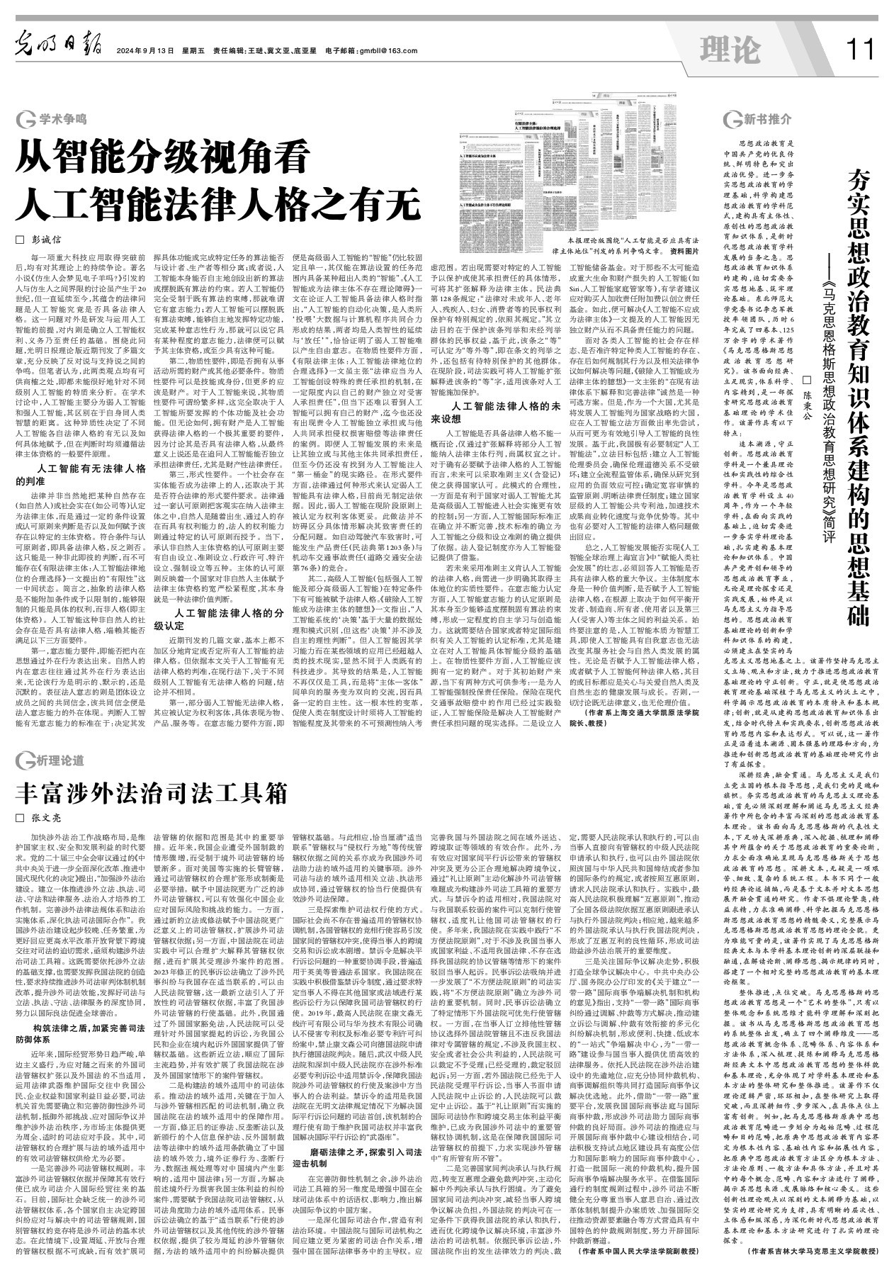 总之,人工智能发展能否实现《人工智能全球治理上海宣言》中“赋能人类社会发展”的壮志,必须回答人工智能是否具有法律人格的重大争议。主体制度本身是一种价值判断,是否赋予人工智能法律人格,在根源上取决于如何平衡开发者、制造商、所有者、使用者以及第三人(受害人)等主体之间的利益关系。始终要注意的是,人工智能本质为智慧工具,即使人工智能具有自我意志也无法改变其服务社会与自然人类发展的属性。无论是否赋予人工智能法律人格,或者赋予人工智能何种法律人格,其目的或目标都应是关心与关爱自然人类及自然生态的健康发展与成长。否则,一切讨论既无法律意义,也无伦理价值。