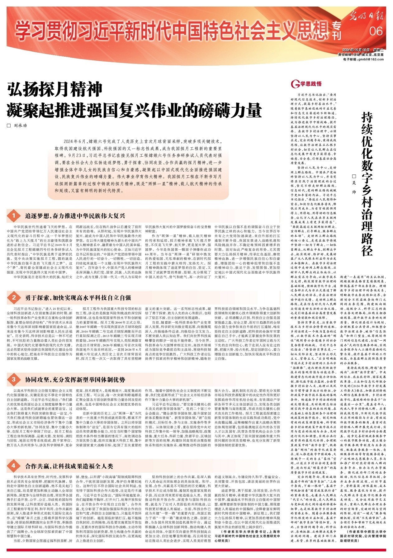 2024年6月,嫦娥六号完成了人类历史上首次月球背面采样,突破多项关键技术,取得我国建设航天强国、科技强国的又一标志性成果,成为我国探月工程新的重要里程碑。9月23日,习近平总书记在接见探月工程嫦娥六号任务参研参试人员代表时强调,要在全社会大力弘扬追逐梦想、勇于探索、协同攻坚、合作共赢的探月精神,进一步增强全体中华儿女的民族自信心和自豪感,凝聚起以中国式现代化全面推进强国建设、民族复兴伟业的磅礴力量。伟大事业孕育伟大精神。我国探月工程在不断书写月球探测新篇章的过程中铸就的探月精神,既是“两弹一星”精神、载人航天精神的传承和延续,又富有鲜明的新时代特质。