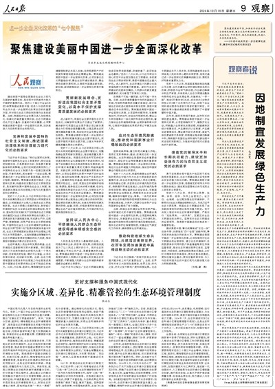 习近平总书记指出:“绿色发展是高质量发展的底色,新质生产力本身就是绿色生产力。”党的二十届三中全会《决定》提出:“健全因地制宜发展新质生产力体制机制”。我国幅员辽阔、人口众多,各地资源禀赋和发展水平不同,发展的重点难点也不相同。发展绿色生产力,必须坚持实事求是、一切从实际出发,根据本地区自然地理环境、生态特质、产业基础等因素因地制宜推动绿色低碳发展,以高品质生态环境支撑高质量发展。