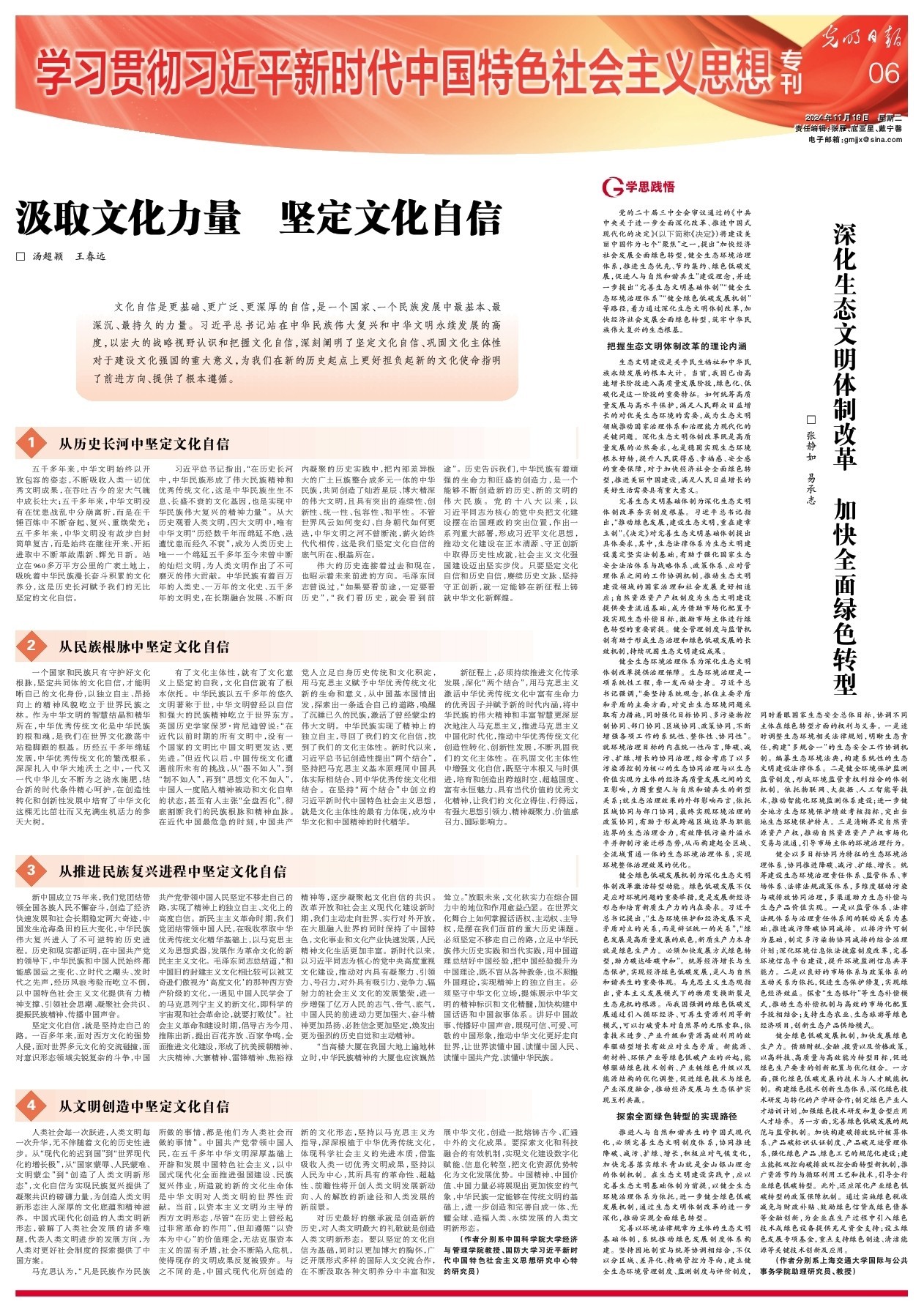 张静如、易承志:深化生态文明体制改革 加快全面绿色转型