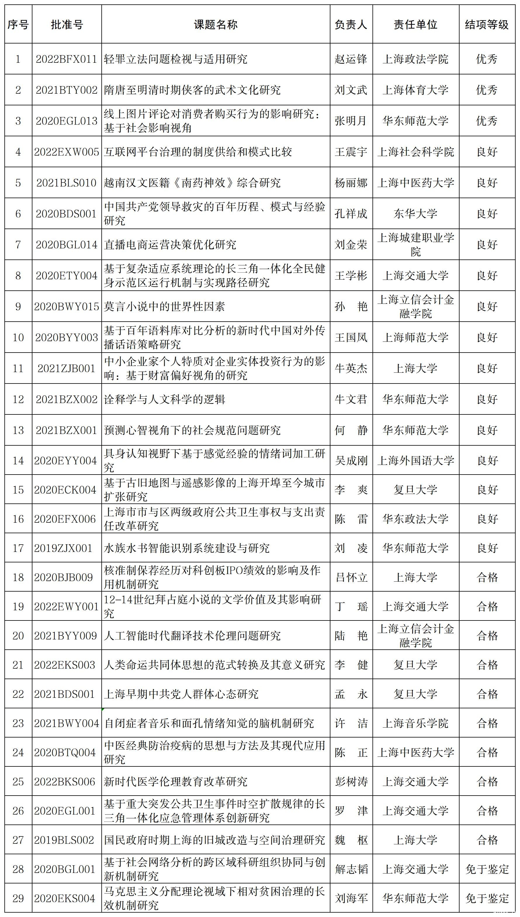 2024年12月,市社科规划办共办理37项课题结项申请。经专家鉴定,29项课题通过结项。现将结项情况公布如下: