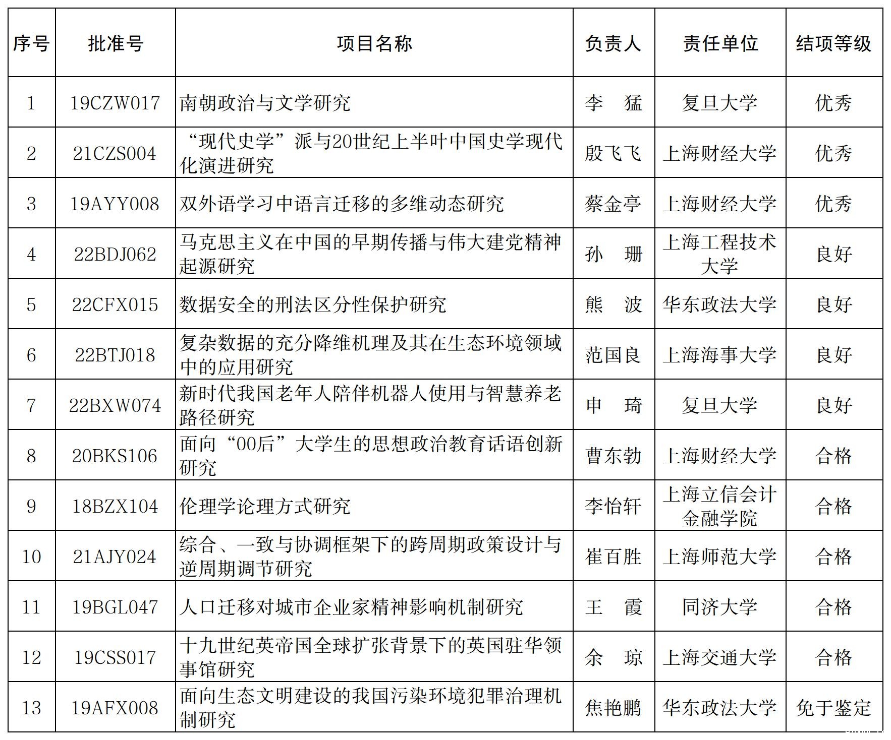 2025年3月,全国社科工作办验收548个年度项目、青年项目和西部项目结项申请。经专家鉴定,我市13个项目通过结项。现将结项情况公布如下: