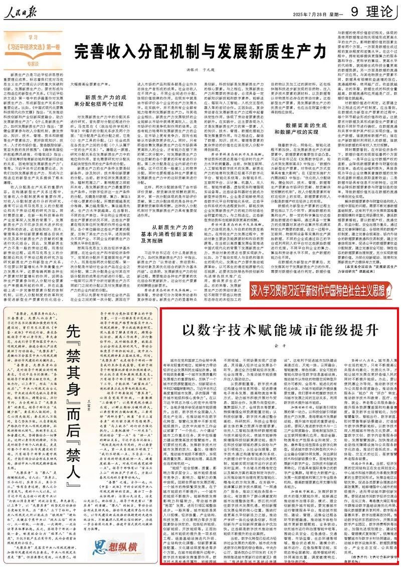 “能级”包含规模、质量、影响力等多层含义,城市能级是城市竞争力、影响力、辐射力的集中体现。回顾世界城市发展历程,一个城市的持续繁荣发展,在于城市能级的不断提升;一个城市的能级不断提升,能够持续发挥影响力和辐射力,带动城市群“抱团”发展,进而引领区域整体进步。一般来看,城市能级是其人口规模、经济体量、产业结构、科技发展、文化影响力等多方面因素综合决定的,包括经济能级、创新能级、开放能级等。正因如此,城市能级的提升是一项系统工程,涵盖基础设施迭代升级、产业结构优化调整、创新要素高效配置、文化建设深度推进等多个方面。在城市能级提升过程中,数字技术能够发挥重要作用。数字技术具有通用属性,能够跨越不同领域、不同场景实现广泛渗透,灵活融入经济社会发展各个环节,通过全方位赋能经济发展、社会治理等,为推动城市能级提升注入强劲动力。