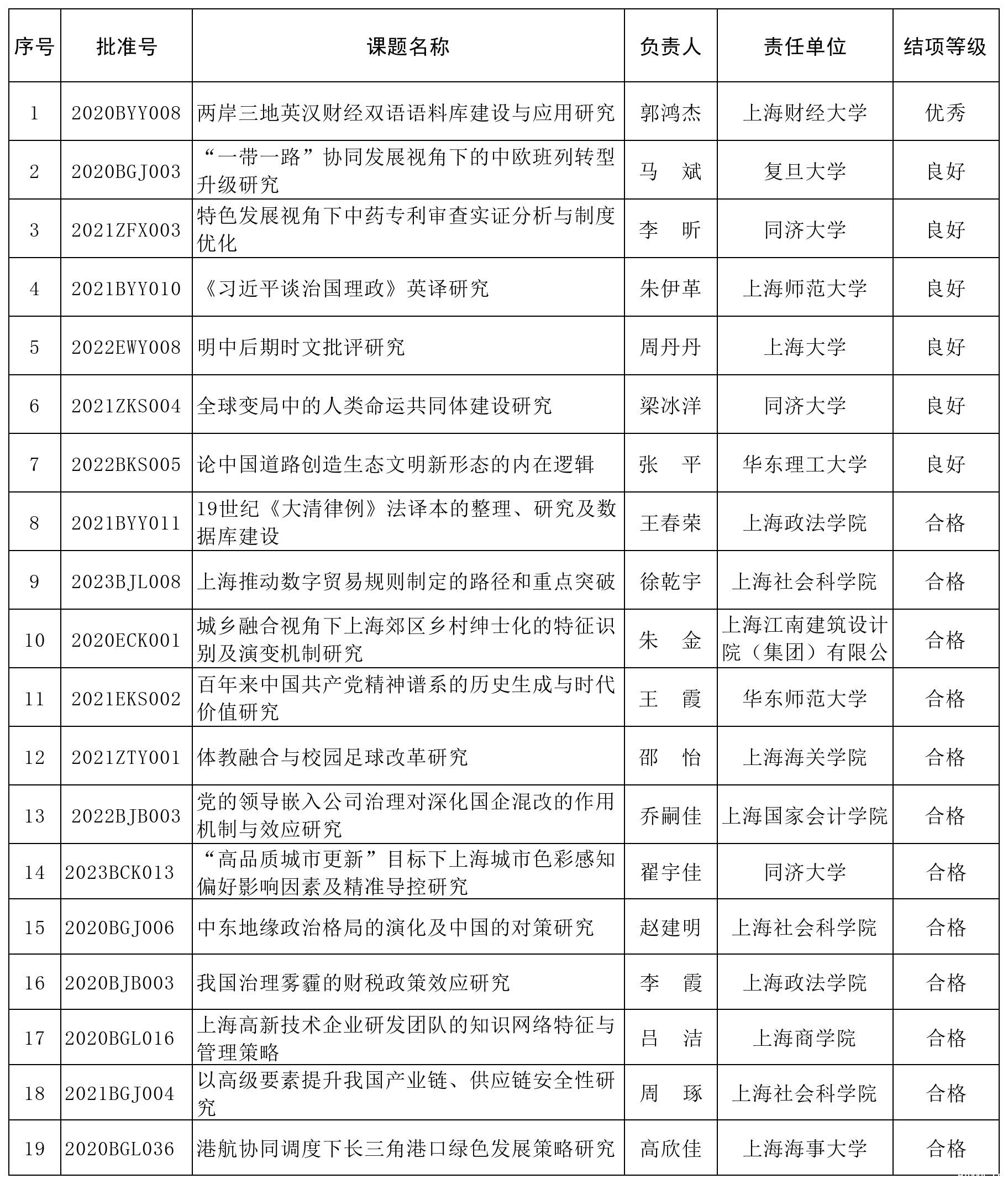 2025年8月,市社科规划办共办理20项课题结项申请。经专家鉴定,19项课题通过结项。现将结项情况公布如下: