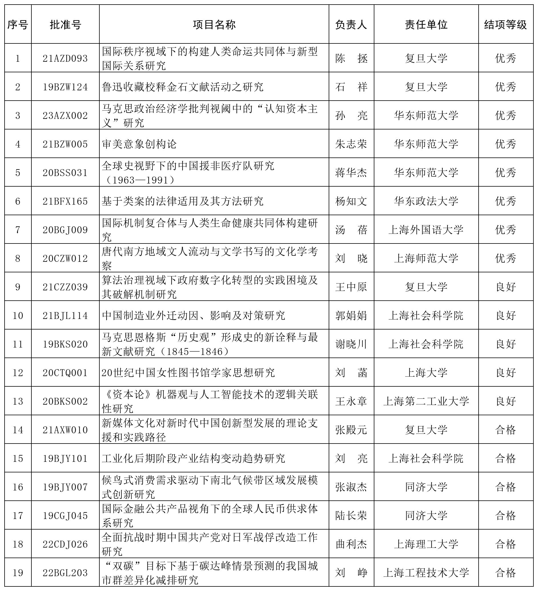 2025年10月,全国社科工作办验收447个年度项目结项申请。经专家鉴定,我市19个项目通过结项。现将结项情况公布如下: